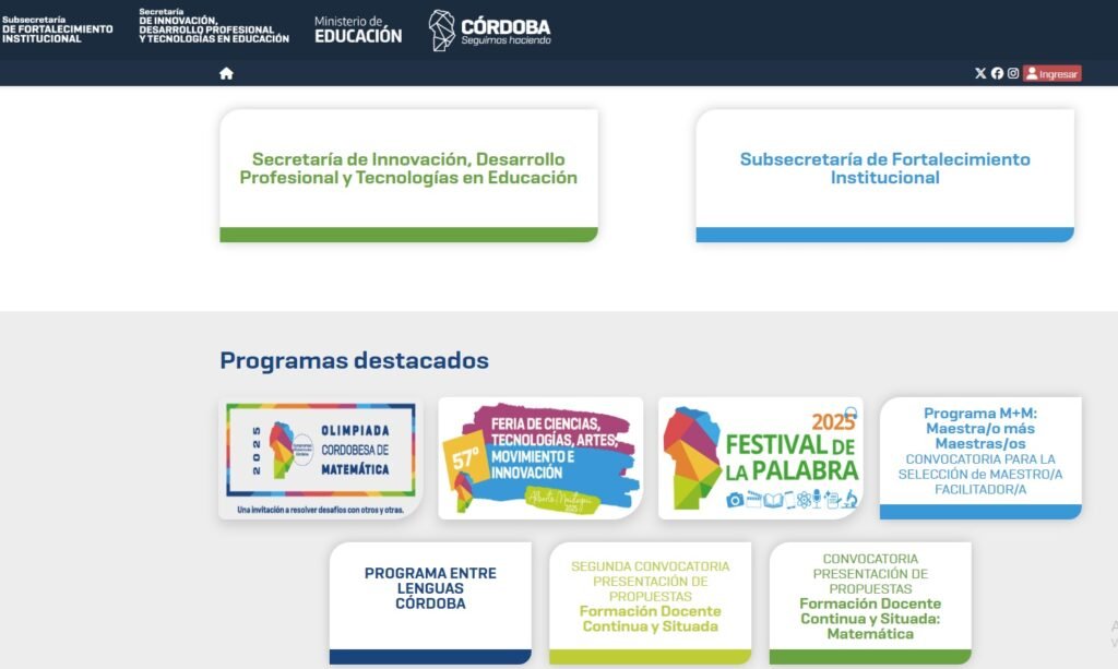 Página web del Ministerio de Educación de Córdoba.