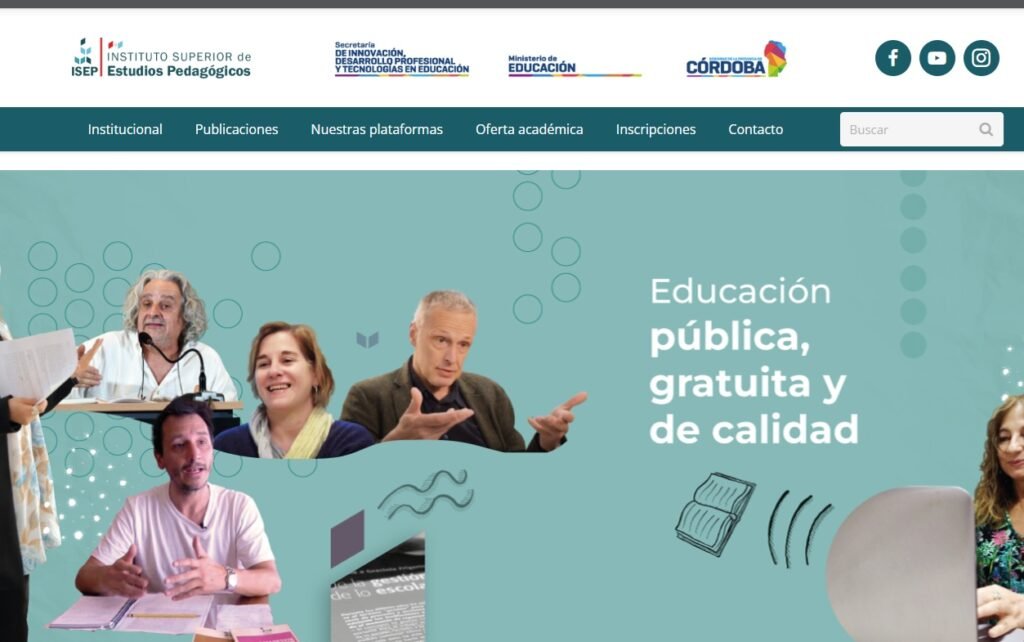 Página web del ISEP: el Instituto Superior de Estudios Pedagógicos de la provincia de Córdoba.